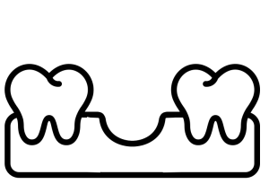 Мост из трех коронок с опорой на родные зубы. Несъемный протез применяется в случае полной утраты одного зуба. Соседние зубы подвергаются перепарированию для крепления конструкции. Длительный срок службы, более выгоднее, чем импланты. Минус - утрата костной ткани под зубом.